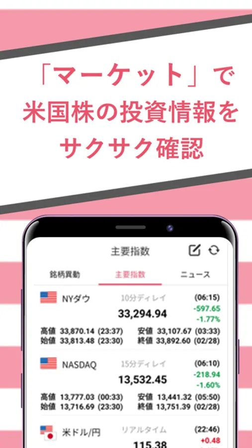 ・個別銘柄のニュース、ランキング、指数などをまとめてチェックできます。