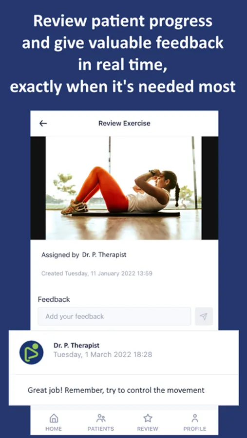 5. See your patients recovery progress in real time, give instant feedback on exercises as they are completed