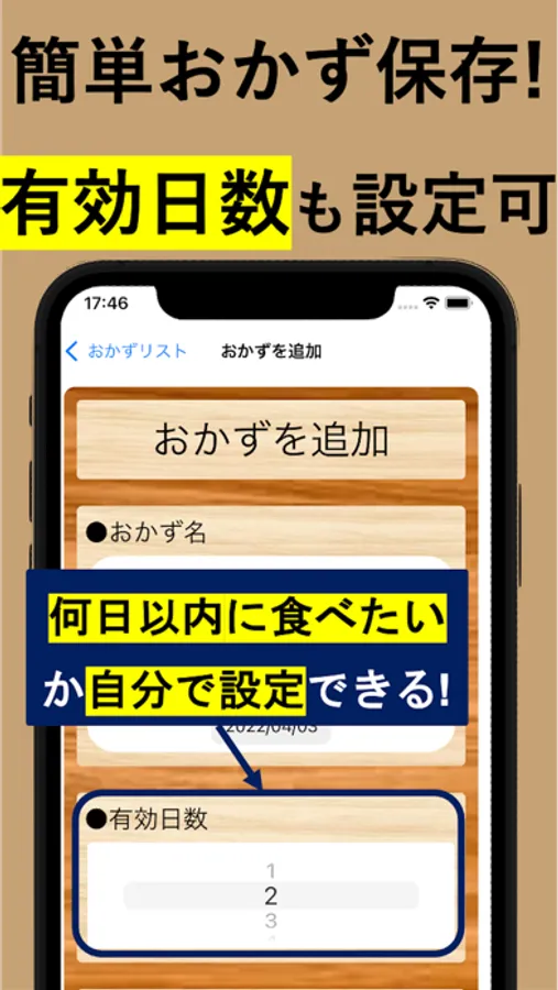 おかず1つ1つに有効日数が設定でき、何日間有効なのかが確認できます!