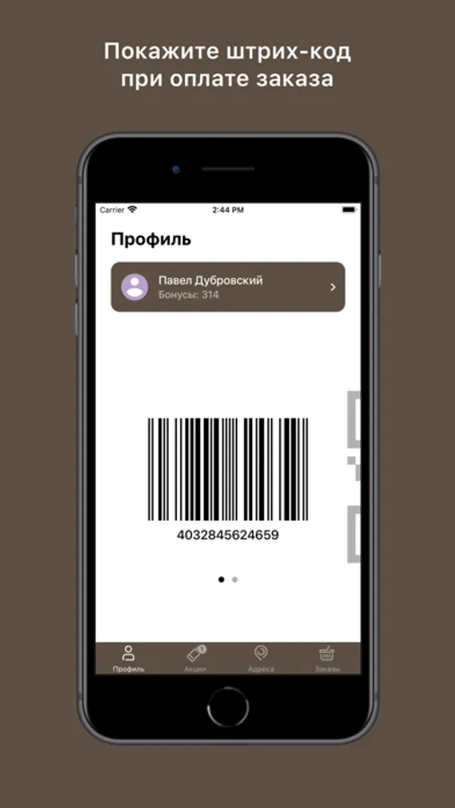 Скачайте приложение, получите свой уникальный QR-код и покажите его на кассе.