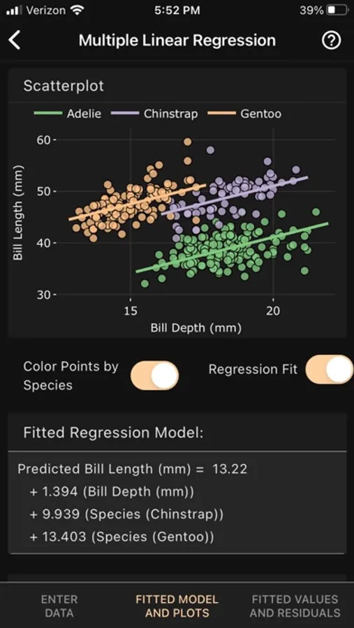 New: Fit a multiple linear regression model with both quantitative and categorical predictors. The app