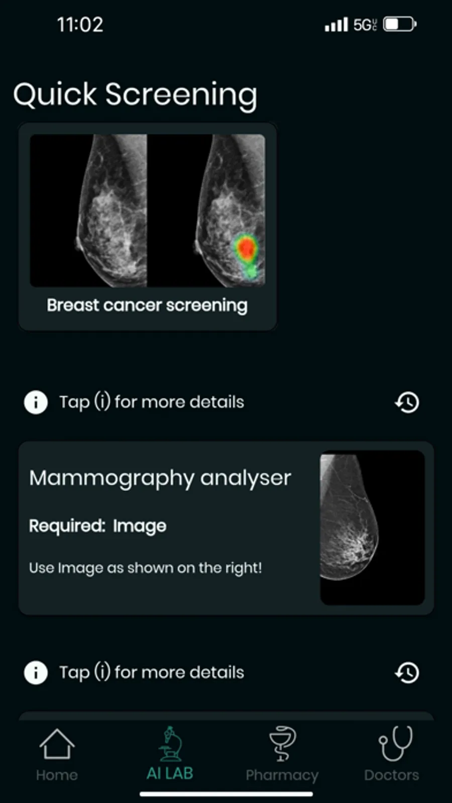 Our free Artificial intelligence tools will help you in establishing accurate diagnosis by analyzing mammography images, chest x-rays, Malaria blood smear images, and leukemia from blood smear. They are healthily accurate; they are on call.