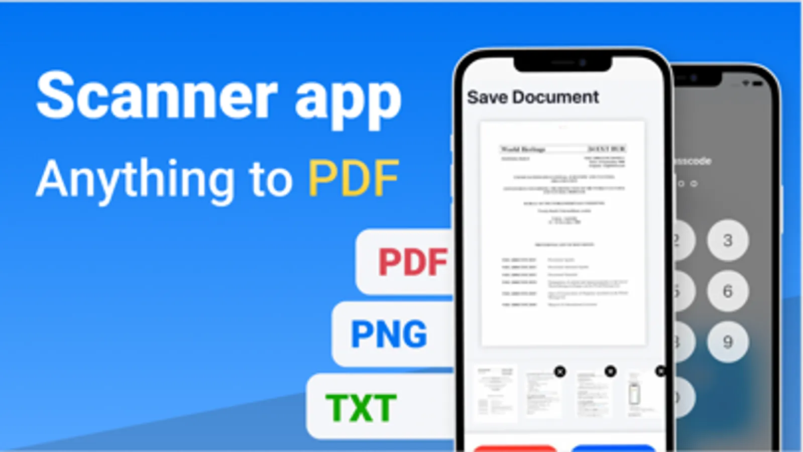 * Instantly scan, save, and share any document in PDF, PNG or TXT formats.