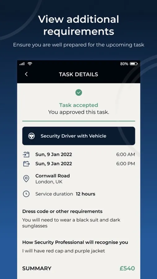Finally, a comprehensive Security App, for like-minded Professionals, that will revolutionise the hiring process. Have your profile viewed by prospective clients in a matter of minutes. Sign up, create your profile, wait for authorisation and look forward to your first task. Created for Close Protection Operatives, Residential Security, Security Drivers, Door Supervisors, Security Guards, and CCTV Operators.