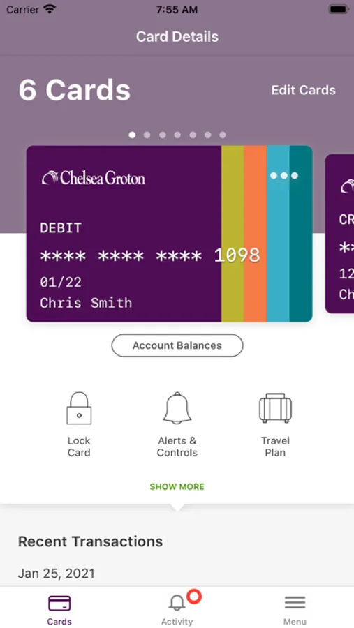 View your transaction history, details, and more. Chelsea Groton Smart Card is supported by your device’s three most recent operating system versions. Tablet devices will display as a phone app. Limited merchant types may still get approved when using geolocation services. Please contact us at 860-448-4200, customercare@chelseagroton.com or through our Video Banking App for more