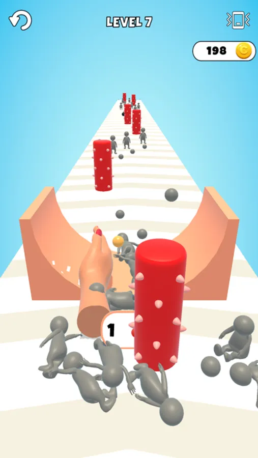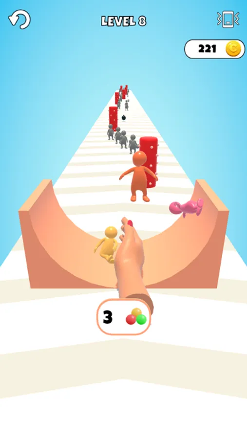 Swipe to control hand and protect characters from obstacles.