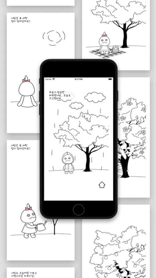 앱을 설치했을 때 심어지는 씨앗에 ‘나'를 대입하여 일기를 쓸수록 성장하는 모습을 자라나는 나무로 시각화하여 보여줍니다. 나무의 성장을 통해 성취감을 느껴 보세요!
