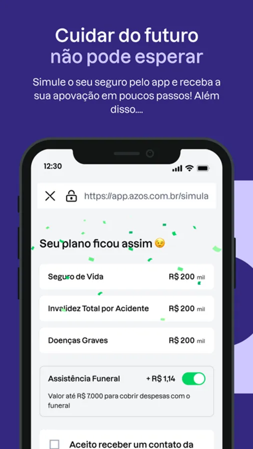 Por isso, temos um convite para te fazer: baixe este app e encontre um novo jeito de encarar seguros pessoais. Além de assegurar que o futuro - seu e das pessoas que você se importa - vai estar protegido, ter um seguro é uma maneira de viver melhor hoje, com mais tranquilidade e plenitude. Não faz sentido a gente se preocupar tanto em contratar seguro para coisas, como carro e celular, e não fazer um seguro para nós mesmos, concorda? "Tá bom, eu até toparia contratar um seguro, mas é uma realidade tão distante de mim."