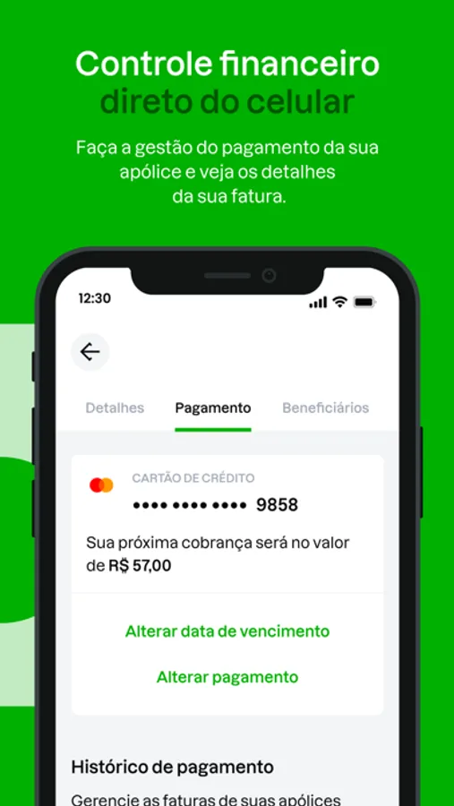 Neste app, você pode simular o seguro ideal para você, ver na hora o valor da mensalidade e da cobertura que você escolheu, contratar, gerenciar o seu plano e até solicitar o cancelamento (duvidamos que você vá querer) - sem letras miúdas e burocracias. Se for preciso, também temos nosso canal de atendimento direto via WhatsApp.