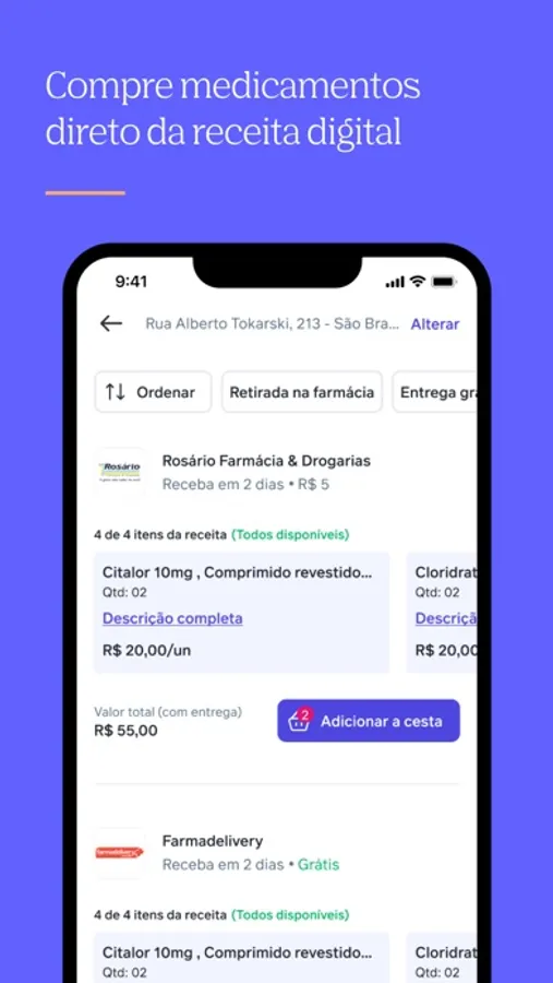 O app é uma central de saúde que torna possível agendar exames, comprar medicamentos com as melhores ofertas, além de possibilitar a compra de produtos para cuidados pessoais.