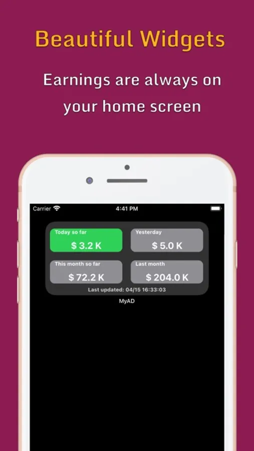 MyAD is a safe and secure way of viewing your AdSense and AdMob earnings. It uses a secure Google Sign In and does not save your password or any personal information to your iPhone.