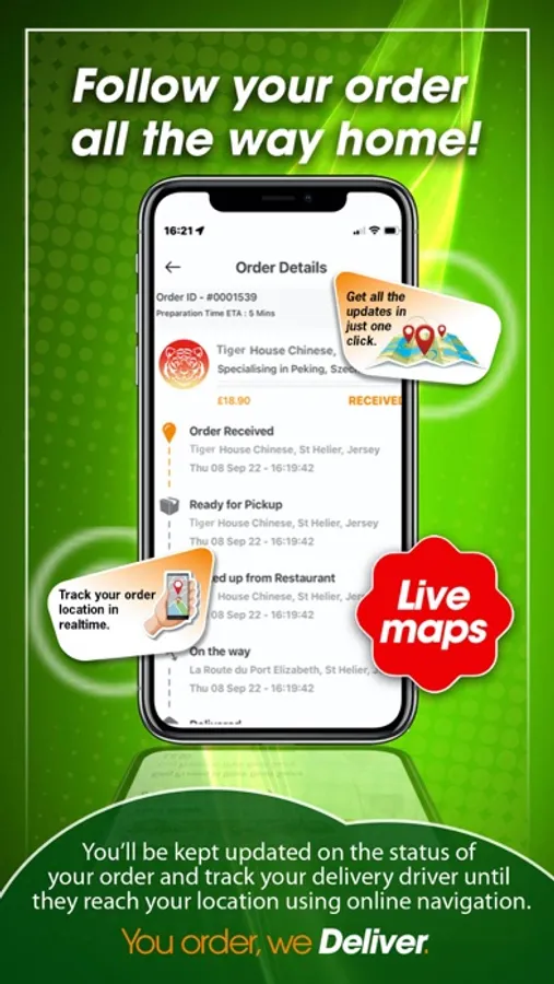 Be notified when your Driver has Reached, Collected, Left and Delivered your food