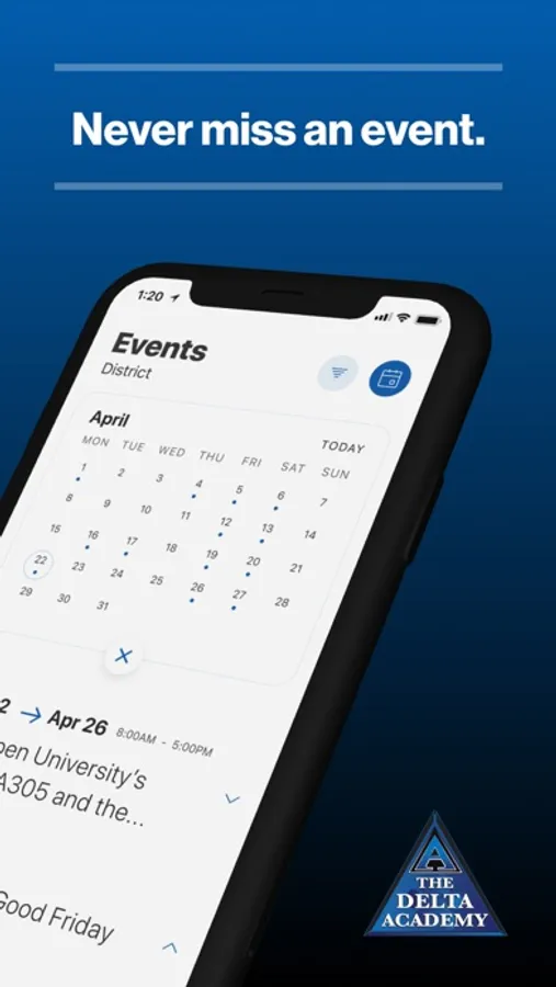 The event section shows a list of events throughout the district. Users can add an event to their calendar to share the event with friends and family with one tap.
