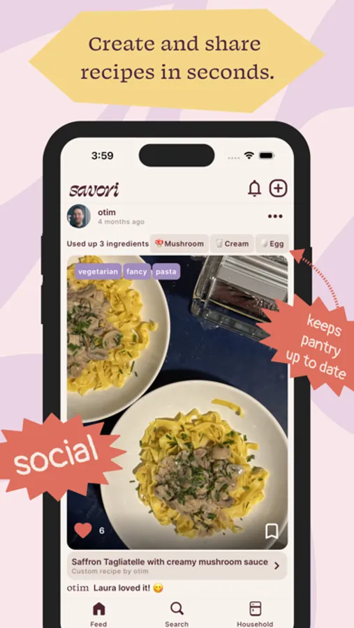 - Discover and share mouthwatering recipes with ease. Recipes can be shared with everyone outside of savori