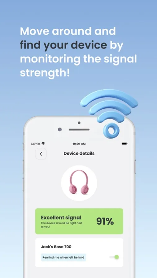 This app shows you how close you are to the AirPods (and other Bluetooth devices) and can lead you to their location. It will detect your earbuds if their Bluetooth signal is on and you are less than 330 feet away (100 meters).