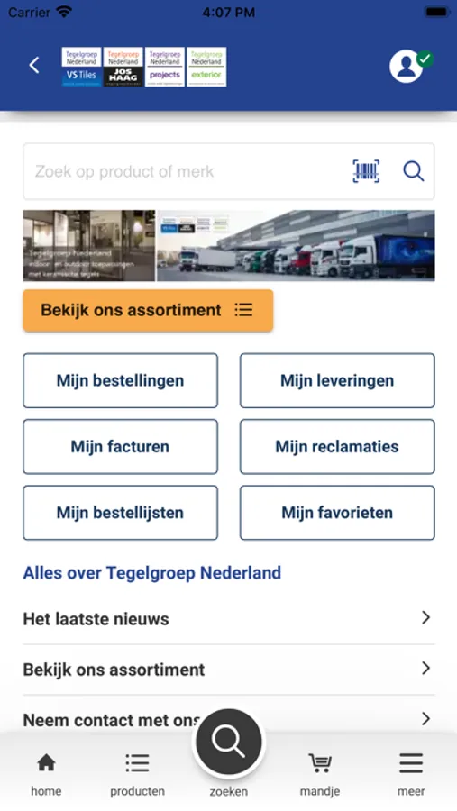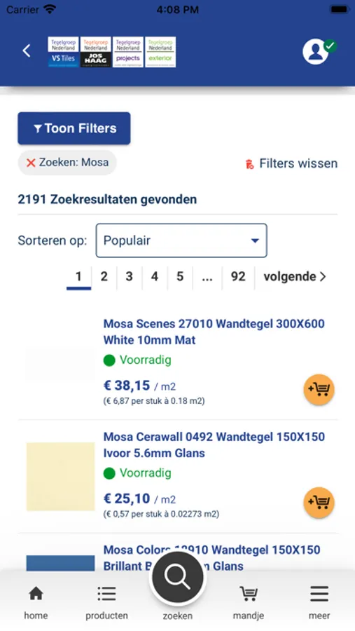 De TGN Online App biedt een overzichtelijke productcatalogus waarin u snel en eenvoudig een product zoekt in het assortiment van Tegelgroep Nederland. Zo beschikt u altijd over de meest actuele productinformatie (afbeeldingen, kenmerken en verwerkingsinstructies). Bovendien ziet u meteen de actuele prijsinformatie gebaseerd op uw prijsafspraken en onze voorraad.