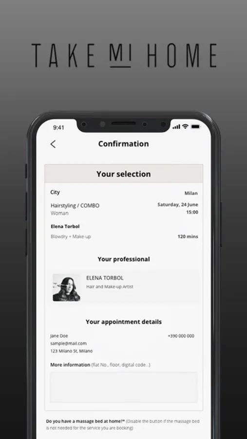 TAKE MI HOME provides beauty & wellness services at customers’ homes in Italy and Spain at any time of the day through selected and high level professionals. TAKE MI HOME also assists customers with the best luxury concierge.