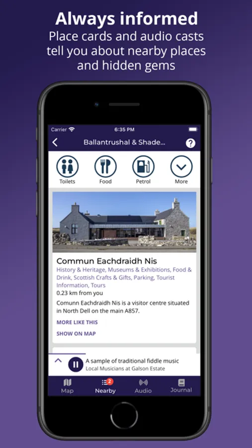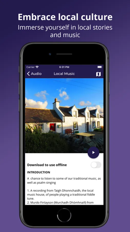 Immerse yourself in our local culture – listen to our music, history and stories through in-app audio tracks.