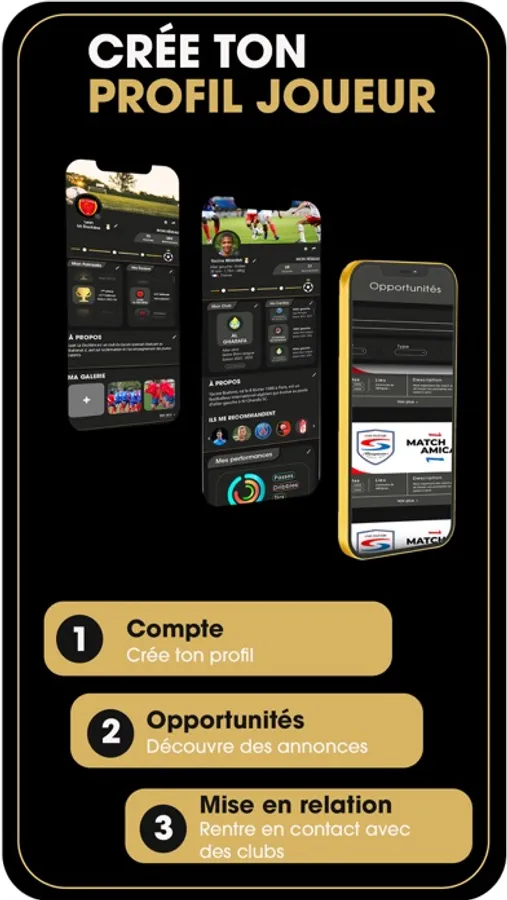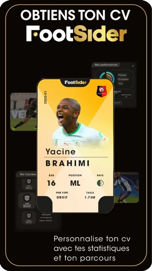Footsider vous permet de créer votre CV Foot, compléter votre profil, publiez vos stats, photos et highlights vidéos pour vous démarquer et vous faire remarquer par les recruteurs, en postulant aux nombreuses opportunités publiées par les clubs pro ou amateurs sur l’App !