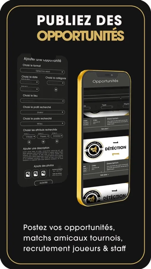 L’app’ Footsider vous permet de recruter plus facilement, de publier des annonces et d’avoir accès gratuitement à une base de donnée qualifiée de milliers de joueurs, pour organiser des essais, des matchs, des oppositions ou des plateaux (tournois) pour vos détections joueurs.