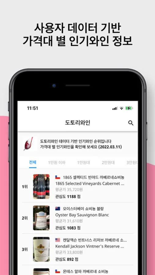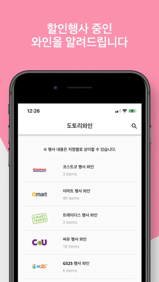 2. 할인 행사 중인 마트, 편의점 와인 정보를 휴대폰으로 편리하게.