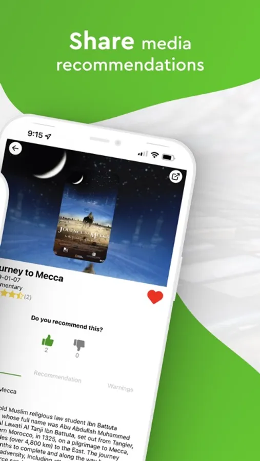 A social community app that helps you discover media recommendations from people who have Islamic values. Find movies, books, TV Shows, streaming series, documentaries, podcasts, and more. Get reviews of media from a muslim perspective. This app will make it easy for you to benefit others by sharing beneficial and interesting content to users across the globe. The "Safety Check” will scan media and help you determine if the media has any disturbing content in it before you watch it! Create groups to share media recommendations and warnings with your friends and family. Muslim-Friendly is a revolutionary app that will give you a Home feed that only displays what you are interested in. Includes, a community forum where you can ask for specific recommendations for adults, kids, teens, toddlers and more. Follow users and stay connected to their recommendations. Join the community today!