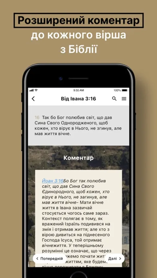 Текст Біблії українською мовою (Старий і Новий Завіт) з аудіо, глибшими коментарями до кожного вірша, основними молитвами до кожного розділу, повідомленням до кожного розділу, планувальником читання, без реклами, плюс курс вивчення Біблії. The Bible in Ukrainian.