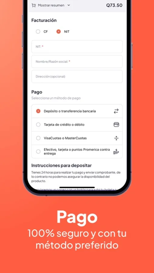 Paga de manera segura con tarjeta, transferencia o efectivo contra entrega.