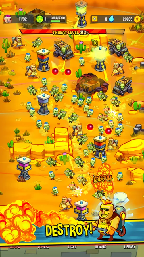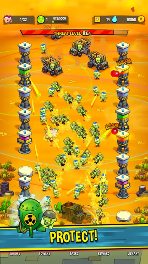 ‣ Change language: English, Italian, Spanish Keep the city protected by all means. The enemy is regrouping and we need your leadership to protect us all. Watch out! These dangerous scavengers also carry nukes with them, and they can destroy your towers at any time. Additionally, they have powerful trucks and armor that make them hard to kill.
