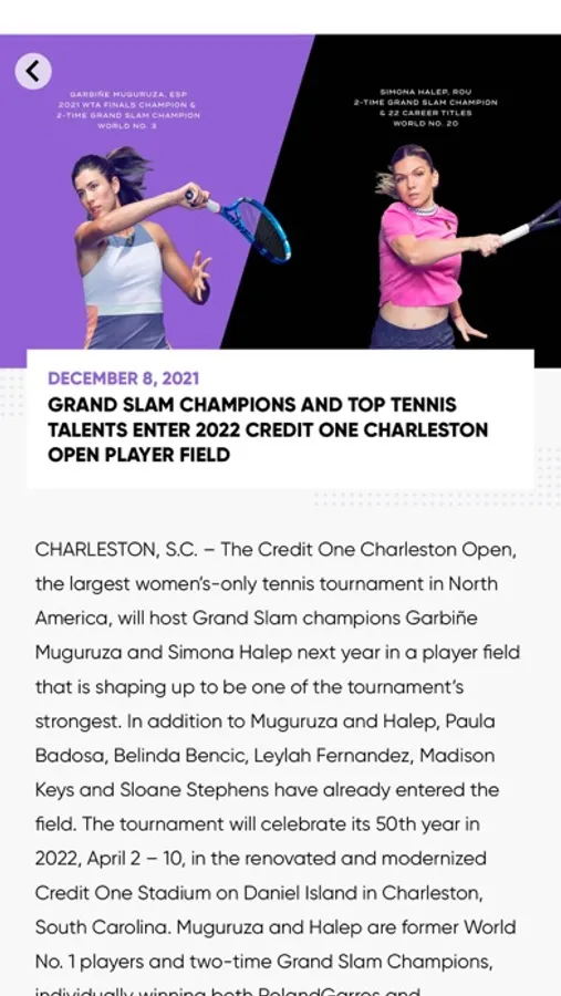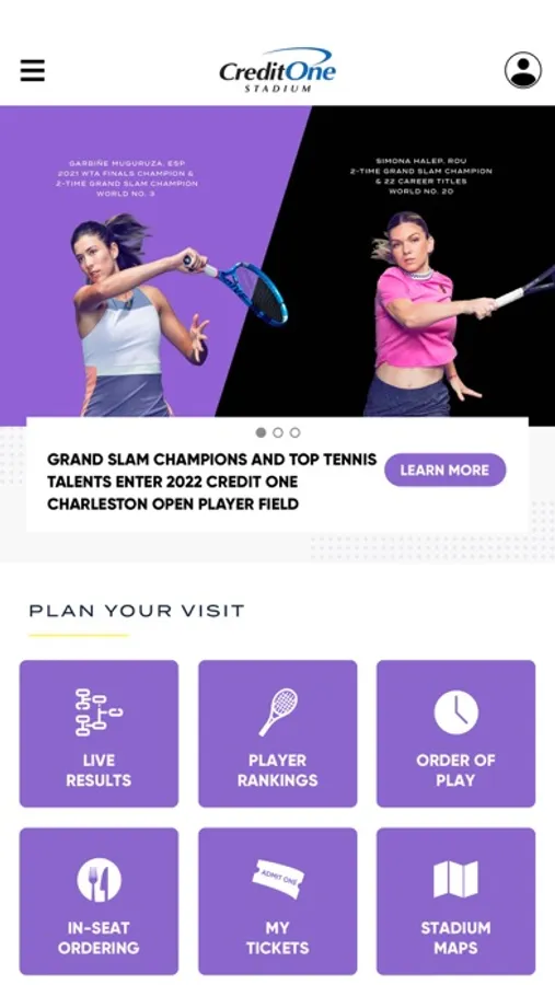 The Credit One Stadium App is the home of the Credit One Charleston Open and the concert series. It’s your go-to source for tournament information with real-time match updates, current player rankings, and the order of play. View upcoming con-cert events or find your way around the stadium. Keep up to date with upcoming events, purchase and even access your digital tickets. Explore Credit One Charles-ton Open news articles and even purchase food and drink right from your seat! All within the Credit One Stadium App. It’s all here!