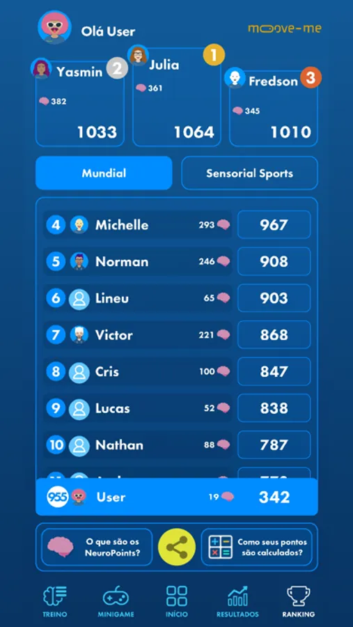 O Sensorial Moove é o único aplicativo que une as principais tarefas de treinamento cognitivo a movimentos para promover a performance e a saúde mental e física.