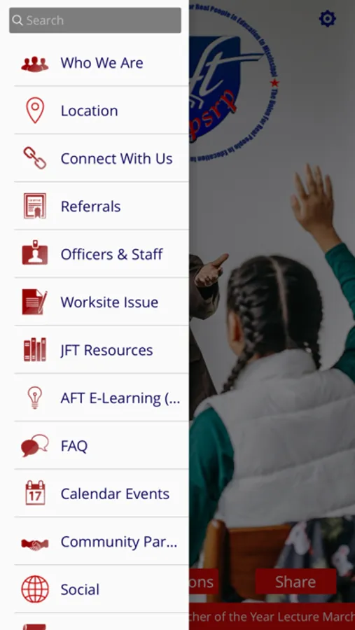 JFT mobile app platform is a great way to engage the educational community. This platform is a resource tool for teachers and other educational professionals. JFT app features include the following: 1. JFT Mission 2. Staff Directory 3. Worksite Issue 4. JFT News and many more engaging features.