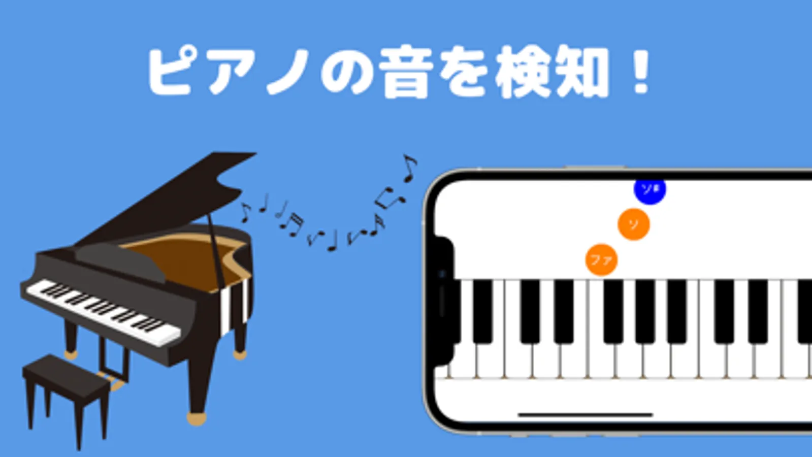 楽譜をドレミで表示します。さらに、ピアノの音を聞き取って自動で楽譜をスクロールするので、演奏しやすいです!
