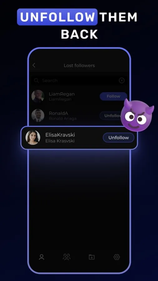 Unfollow for Instagram - Unfollow people easily. Choose from a list of followers, unfollowers, new followers or from your regular following list.