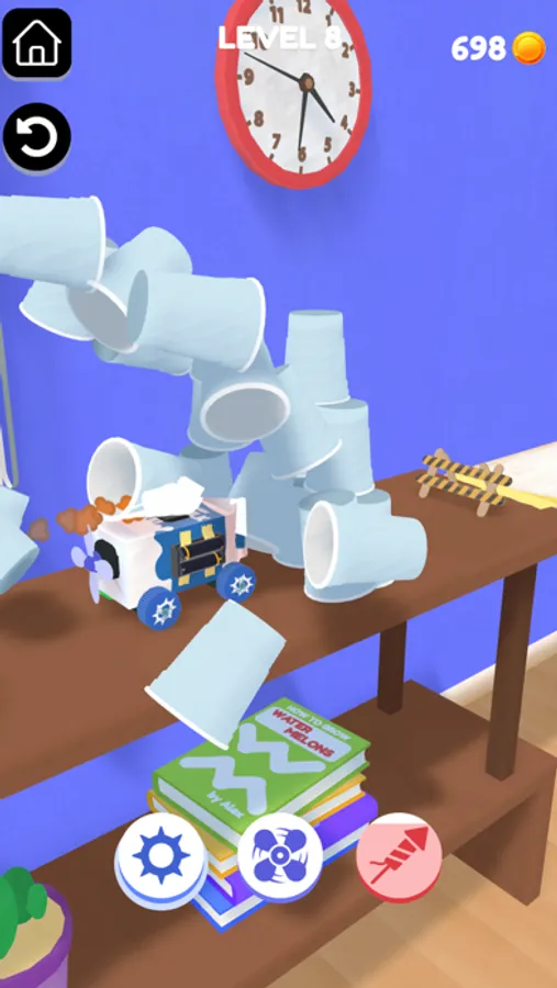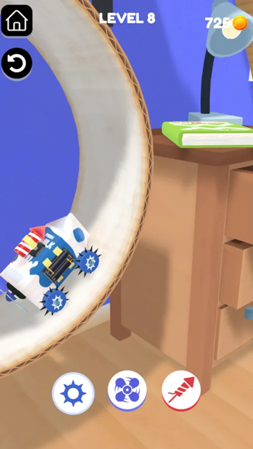 Make your go kart with the things you can find in your room. Put together the kart so that it can make it through the track ahead of you. You may have to do a few test runs before a successful run. You're going to find that this is a very unique game that will get you hooked as soon as your start. Have fun!