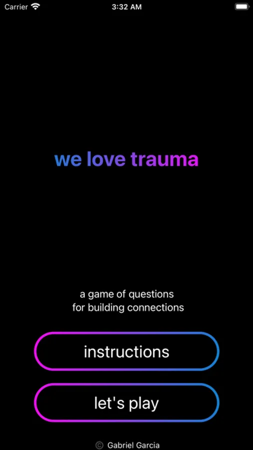 We Love Trauma is a game of questions for building connections. With over 275+ questions designed to spark meaningful conversations, We Love Trauma can be played with old friends, new friends, dates, colleagues, and anybody you would like to build a stronger connection with.