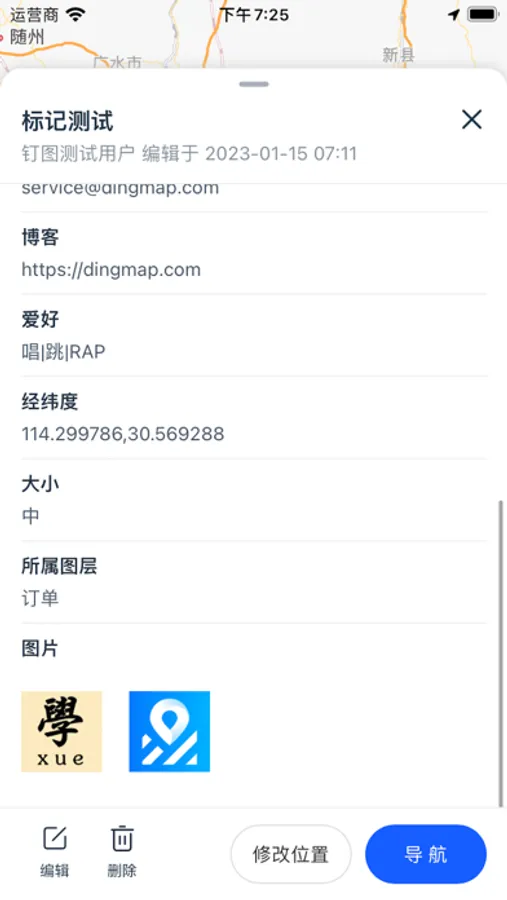 4、上门服务派单:上门维修、运输配送等公司可以将接到的订单标记在地图上,并在标记点内添加详细的派单内容、客户联系方式等,这样员工可以时时看到新标记的订单并按照最优路线去完成指派任务,完成以后可以把标记点删除或者改变颜色,避免了微信群内派单、发定位、漏单、重单还不直观的问题。