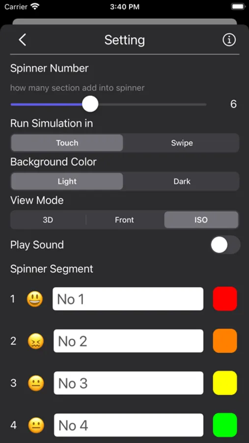 The wheel animating in real time to get a random result. Spinner simulates accurately from 2 segment and up to 12 segments in 3D scene. You can swipe or touch the screen to spin the wheel.