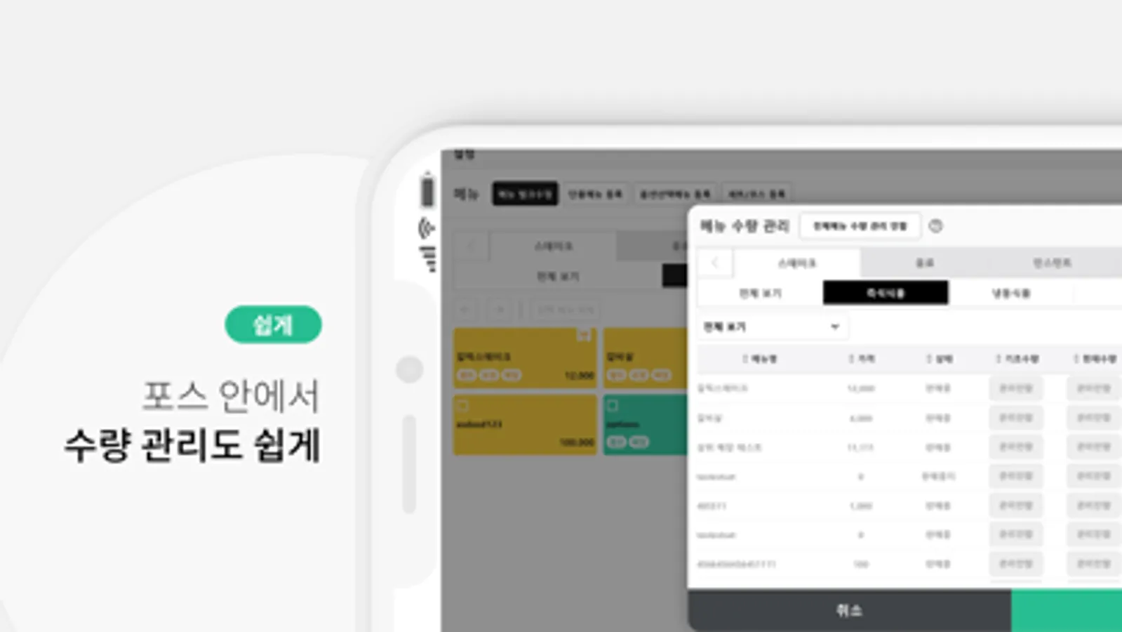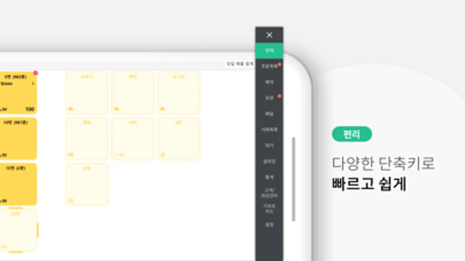 선공사 없이 간편하게 설치가 가능하며, 기본적인 포스 기능 및 예약 / 대기 / SMS 발송 등
