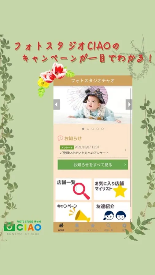 フォトスタジオチャオは赤ちゃんから成人、メモリーフォトまで、様々な撮影ができる写真館です!