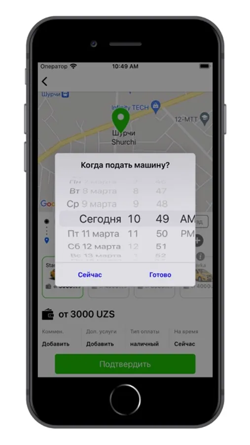 Oldindan buyurtma bering yoki hozirda taksiga buyurtma bering.