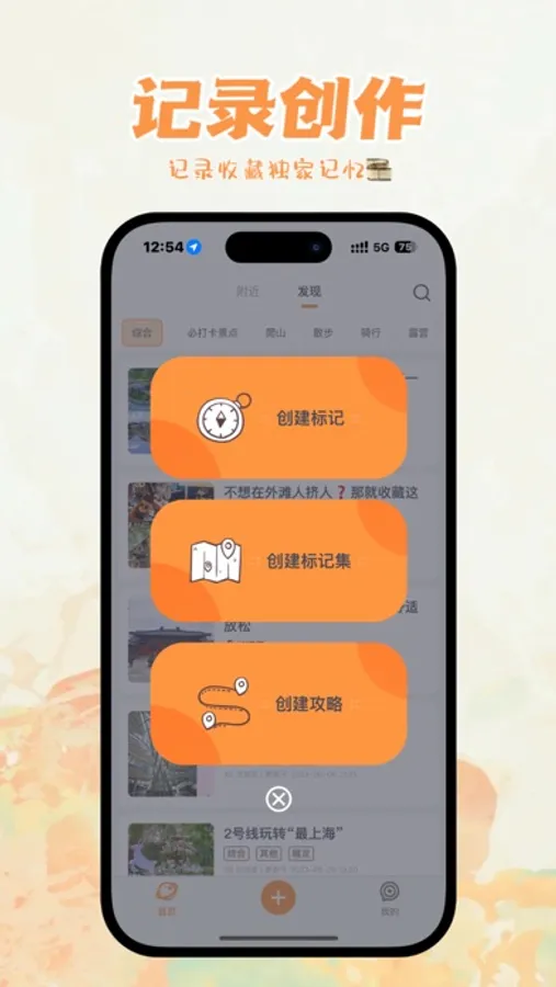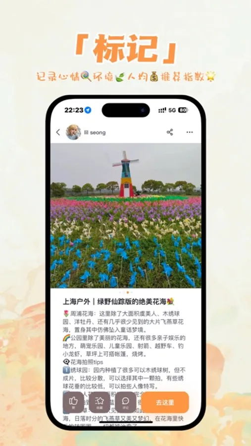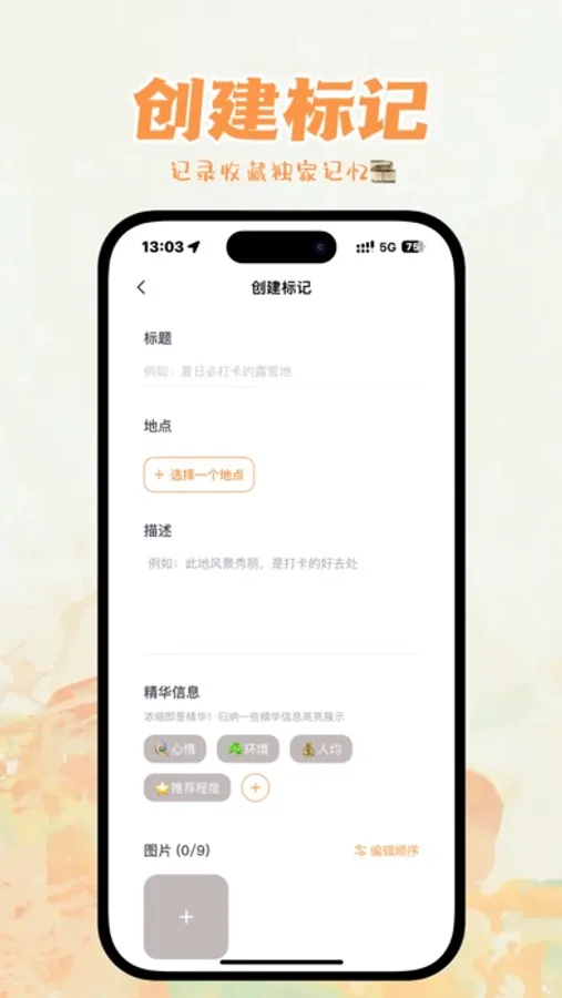• 在地图创建一个标记,记录当下的体验心情、环境、人均、推荐程度……