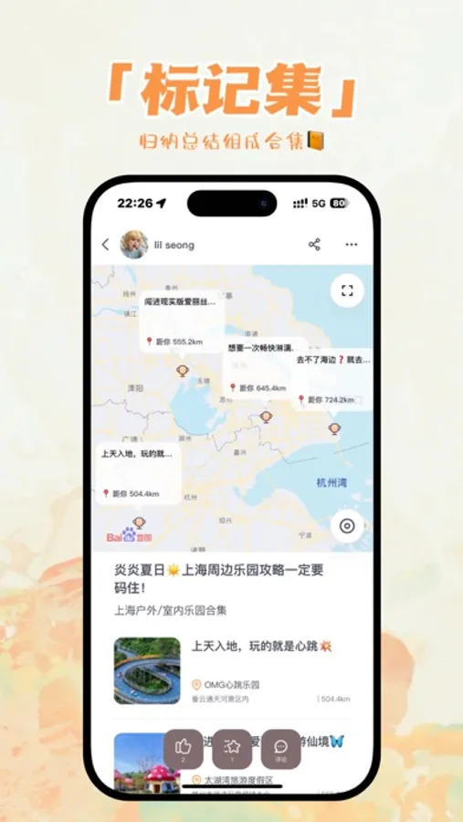 • 将每个单独的标记地点组合成合集,既方便自己记录,也能帮助他人出行