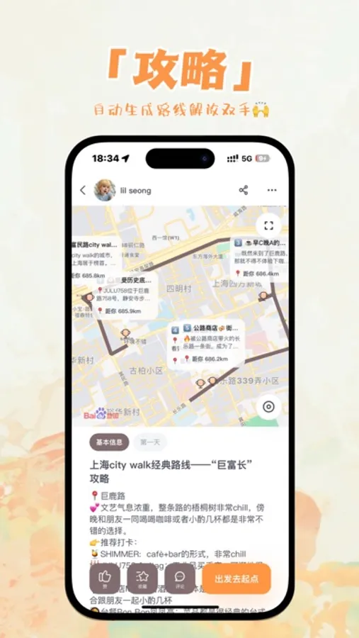下周六不仅能为用户提供收获实用有趣的攻略、自动生成的出行路线,还更能给用户提供一个结识志趣相投出游搭子的机会,让用户享受更智能、便捷的旅行。