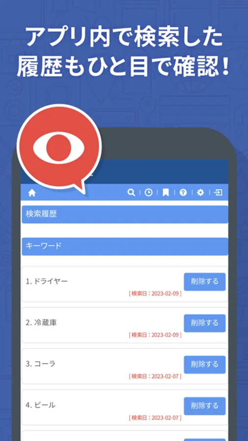 アプリ内で検索した商品のページ履歴が保存されます