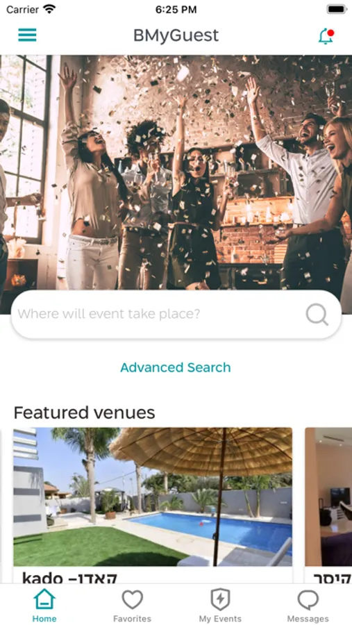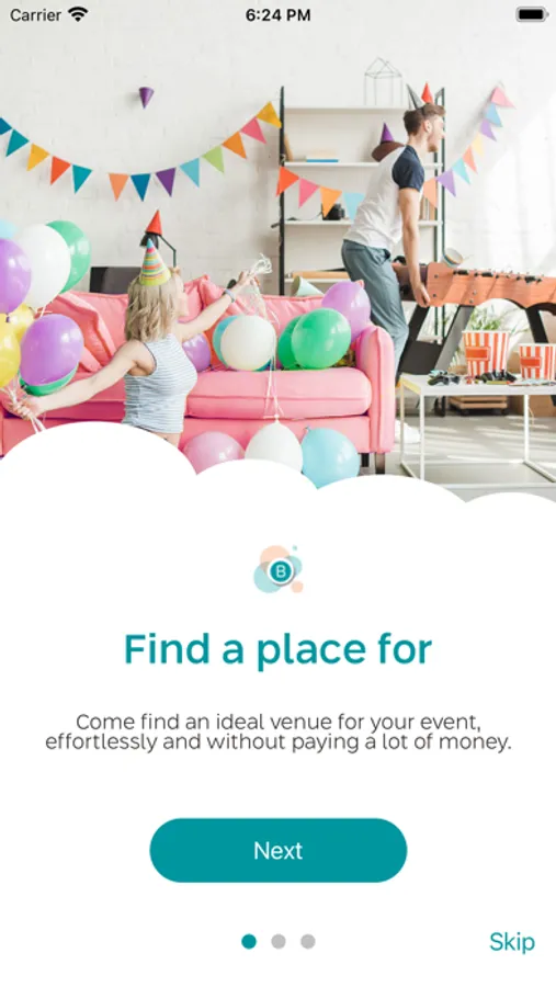 A platform for private event organizers for find venues published by homeowners, who offer their place for a few hours