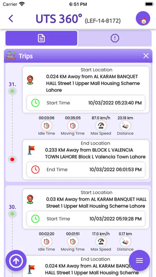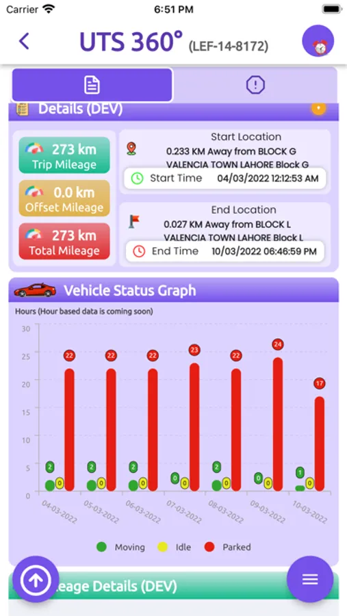 • Destination: The user can check trip destination as per the given date range and vehicle registration number.