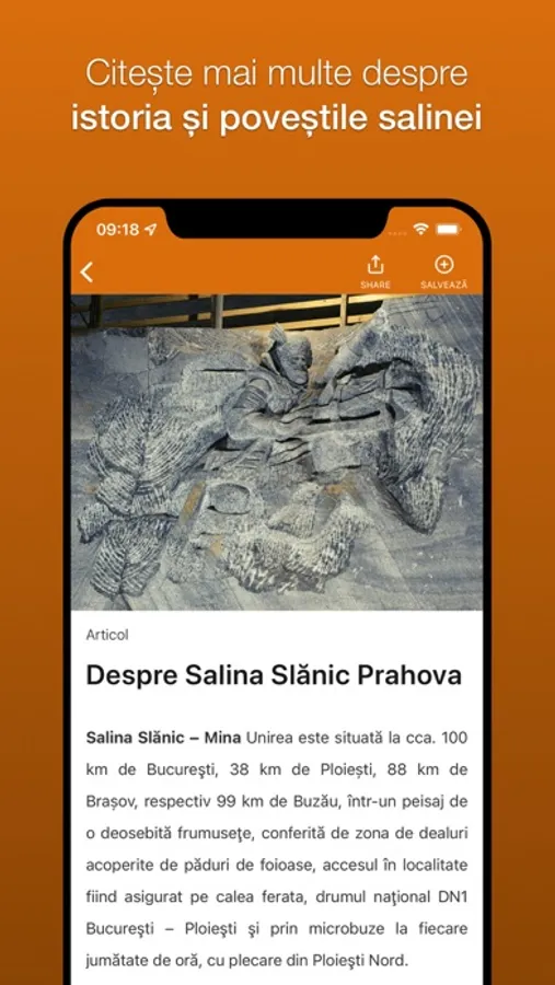La mai puțin de 100 de km nord de București, coborâți în lumea fascinantă din adâncuri în Salina Slănic Prahova. Mina, aflată la o adâncime de peste 200 de m poate fi explorată acum cu ajutorul aplicației mobile Salina Slănic App. Află cele mai interesante detalii, descoperă obiectivele de vizitat, detalii despre activități și evenimente, inspiră și pe alții lăsând recenzii și descoperă împrejurimile prin harta interactivă.
