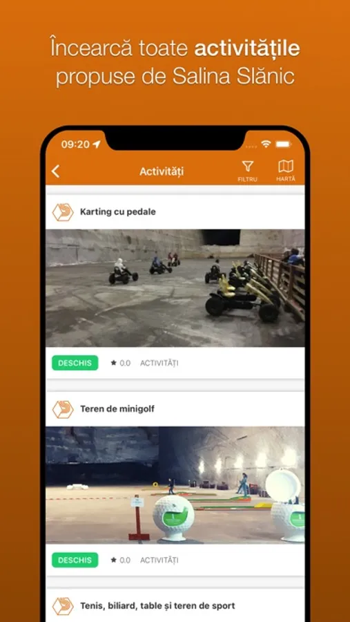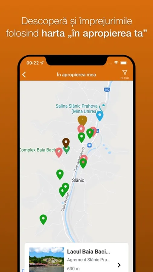 - alege pe harta „în apropierea ta” cazări, restaurante și activități recomandate de Salina Praid;
