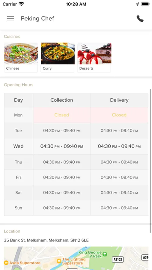 Thank you for visiting Peking Chef in Melksham. We hope you enjoy our online ordering app and your food.